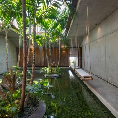 Avec carpes Koï et cascade apaisante
